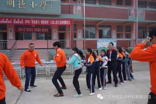 2016年12月8日-9日,有著廣東江西上猶商會(huì)會(huì)長(zhǎng)、廣東博皓復(fù)合材料有限公司董事長(zhǎng)雙重身份的賴厚平先生帶領(lǐng)商會(huì)成員等一行人來到江西上猶縣開展為期二天的“扶志助飛、捐資助學(xué)”捐資助學(xué)活動(dòng),為偏遠(yuǎn)貧困山區(qū)小學(xué)的師生們送去助學(xué)金和課桌、學(xué)習(xí)用品、電腦設(shè)備等一大批教育教學(xué)物資,用行動(dòng)助力地方教育工作。